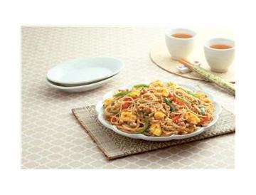 • 三種きのこと豚肉の和風あんかけ焼きそば